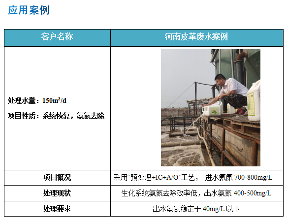 以上皮革廢水的特點使得皮革廢水的處理難度較大,其難度在難度分級中處于中上等。企業(yè)尤其是在氨氮、總氮減排方面面臨巨大的壓力。針對這一問題,目前最為安全有效、長期穩(wěn)定的方式就是對系統(tǒng)進(jìn)行生物強化。研究顯示,日常運行過程中,定期投加菌劑,可以更好的提高系統(tǒng)的耐沖擊能力,但目前大多數(shù)廠家,通常是在系統(tǒng)受到?jīng)_擊時選擇投加大量菌劑,無論是哪種情況,選對菌劑很重要。庫巴魯®氨氮激活菌201 ,一款氨氮去除率高達(dá)99.9%的硝化細(xì)菌產(chǎn)品,有效提高系統(tǒng)的硝化能力,增加生化系統(tǒng)抗沖擊性,3天見效,15達(dá)標(biāo)。小小的細(xì)菌,大大的能量!